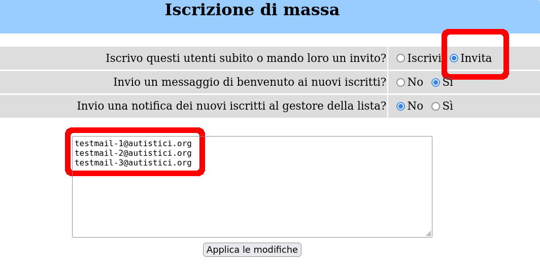 - mod refers to moderated users, so people that not allowed to send messages to the newsletter. Only the authorized people should be not moderated, so for example you should set as not moderated your email address and/or that of other people authorized to send messages. Note: the email of the admin of the newsletter is not automatically authorized to send messages, so even this address should be subscribed to the newsletter and not moderated.
