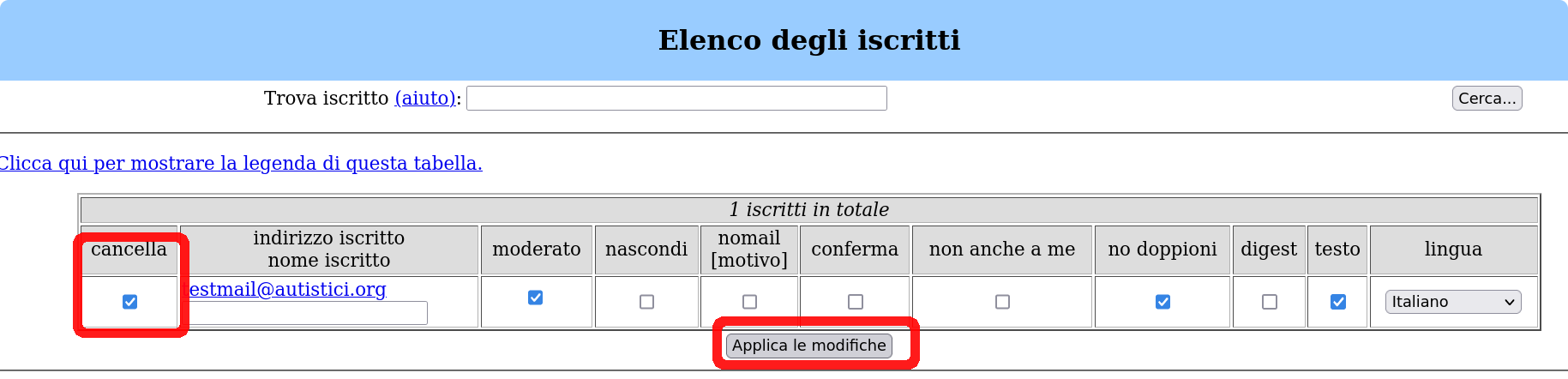 If you want to unsubscribe a single user, just click on the unsub box next to his/her mail and then on “Submit your changes”.