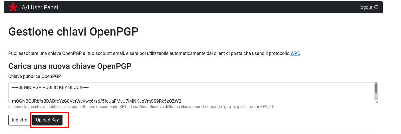 Howto add a PGP public key to your user panel